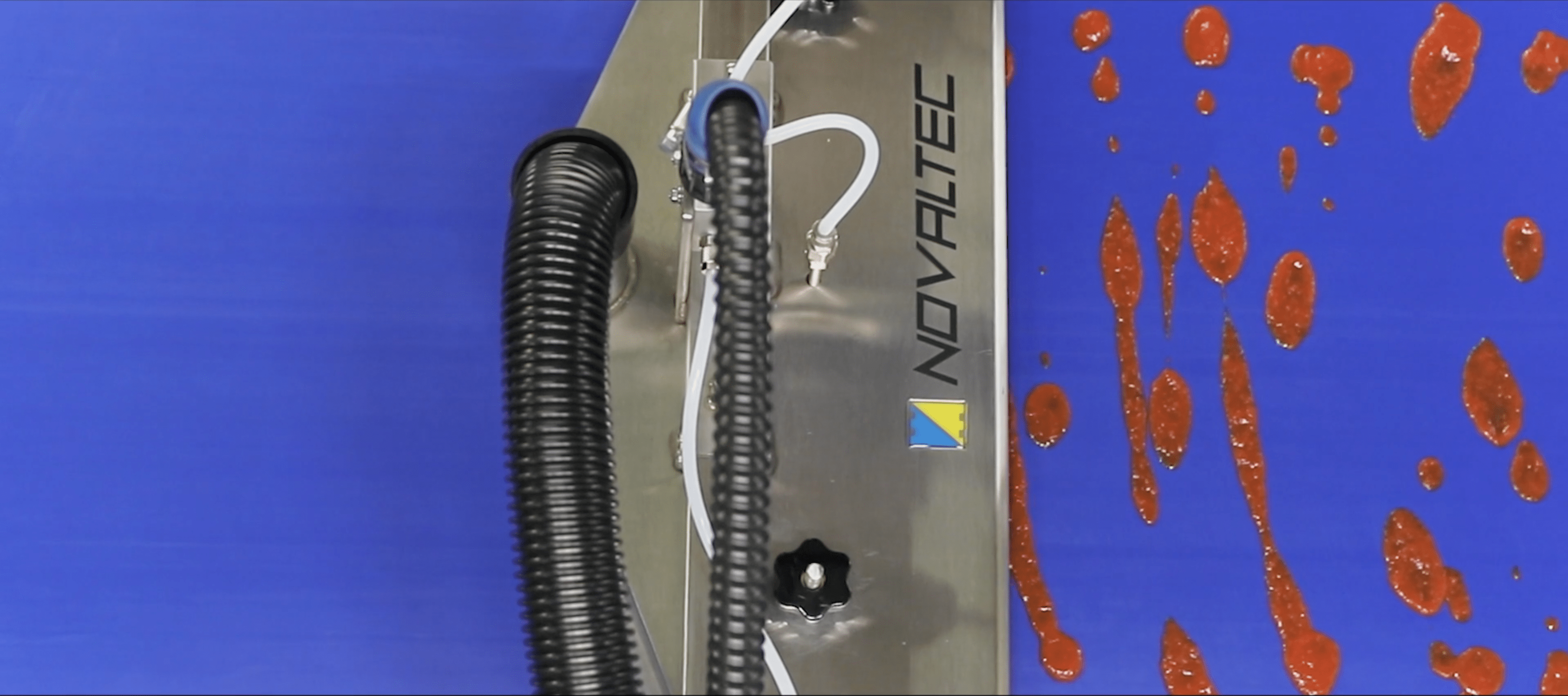 - L’injection-extraction en vapeur sèche sur le tapis de convoyeur élimine les biofilms contenant des germes, micro-organismes, bactéries, levures.